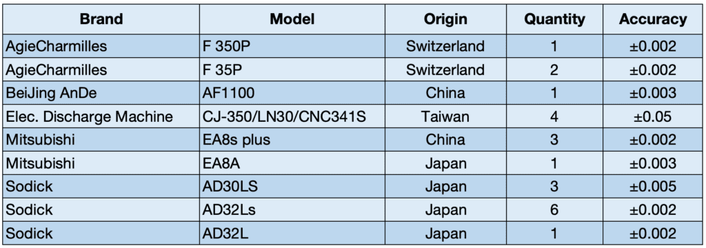 Our factories are equipped with world-class machinery built for accuracy and customization. Our long list of machinery includes CNC milling, surface grinding, EDM, and wire-cutting machines that are manufactured to exact standards and conform to users’ engineering specifications.